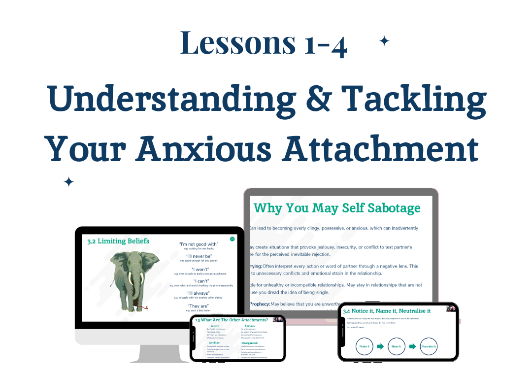 Whether you're in a long term relationship, just started dating or taking a break to work on yourself, this course is designed for anyone with an anxious attachment style, who feels it is causing conflict within themselves and their relationships.